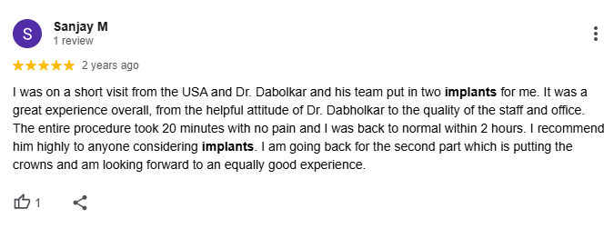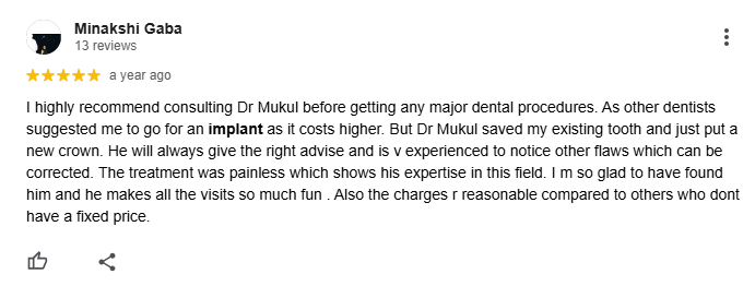 "Dr. Mukul’s practice was clean, modern, and professional–and a great value for the money. The service I received was excellent and the quality of the care was beyond my expectations. I highly recommend Dr. Mukul’s clinic to anyone looking for dentistry in Bandra."